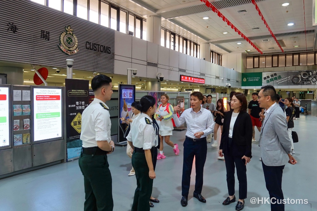 十月一日,香港海关助理关长(边境及港口)蒋依莉亦到香园围管制站、落马洲支线管制站及港珠澳大桥香港口岸,实地视察通关情况。蒋依莉感谢前线同事们的专业和努力,坚守岗位,提供优质便捷清关服务。
