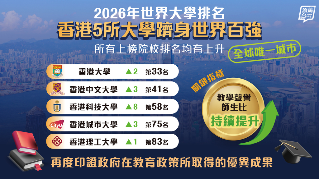 岭南大学(岭大)今年首次参与2026年度《泰晤士高等教育世界大学排名》。根据最新公布的结果,岭大在来自115个国家或地区的2,191所高等学府中,跻身世界首301至350位,并于多项评审指标中表现亮眼,其中包括在「国际展望」高踞全球第47位,彰显岭大在推动国际多元化及全球协作研究方面的卓越成就。